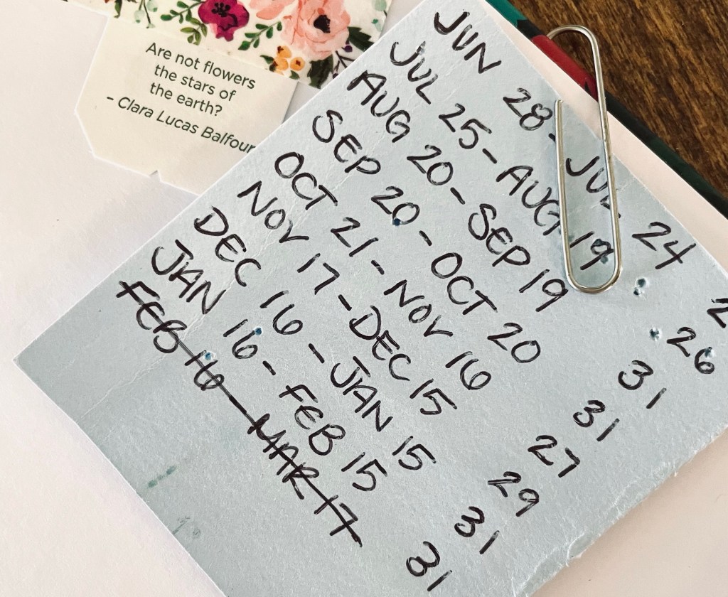 I gave her a notecard with the last eight months of cycle information and told her how my cycle has had a history of inconsistencies. How when Brian and I first started dating my period stopped all together for four months until I was put on birth control.